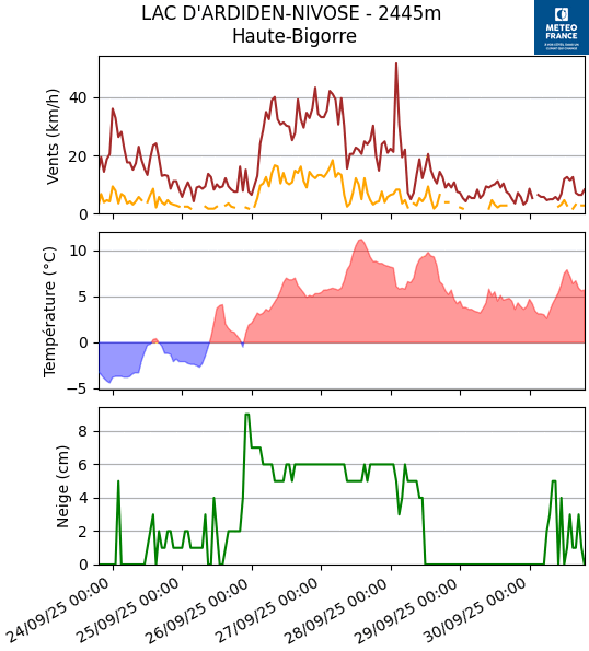 Didier Posté(e) 19 septembre Pechbonnieu (31), mais Luz Saint-Sauveur et Gavarnie pour des relevés climatologiques Partager Posté(e) 19 septembre (modifié) Il y a 4 heures, Arkus a dit : Classe 4, mais ouverte depuis 1982, on peut supposer que les conditions de site sont restées à peu près les mêmes depuis. Pour le Pic du Midi, on est encore plus haut qu'hier avec 19.5°C, je ne m'y attendais pas au vu de la situation plus dynamique aujourd'hui. Par conséquent, même plus de restriction sur le record mensuel vis à vis de la vieille valeur de 1912 (19.0°C), autre que le fait qu'elle soit arrivée plus tard dans le mois. On est assez proche d'une valeur ovni pour aujourd'hui (à priori définitive au vu de la présence de nuages convectifs). Quasiment la Txx annuelle et moins de 2°C du record absolu. Effectivement valeur remarquable aujourd'hui au Pic du Midi pour une troisième semaine de septembre . A ma station auto de Luz Saint-Sauveur, record de Tx également battu avec le seuil de la très forte chaleur atteint avec 35,0°C tout rond. D'ailleurs je ne comprends pas pourquoi cette valeur n'a pas été enregistrée sur le site Infoclimat avec une maxi de 34,9°C affichée. Le précédent record datait du 07/09/2016 avec 33,8°C à la station auto mais 34,3°C à mon enregistreur plus précis situé juste à côté. A noter que depuis le 05/07/2025, j'ai changé l'ensemble des capteurs et la sonde est plus réactive. Sinon le précédent record à mon enregistreur était de 34,7°C le 10/09/2011. Photo actuelle de la station d'Ayros-Arbouix prises le 27/03/2025 par MF : En 2007, photos de l'ancienne station manuelle (classe 5 je pense) : Modifié 19 septembre par Didier 4 2 Lien à poster Partager sur d’autres sites More sharing options...