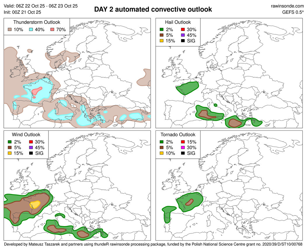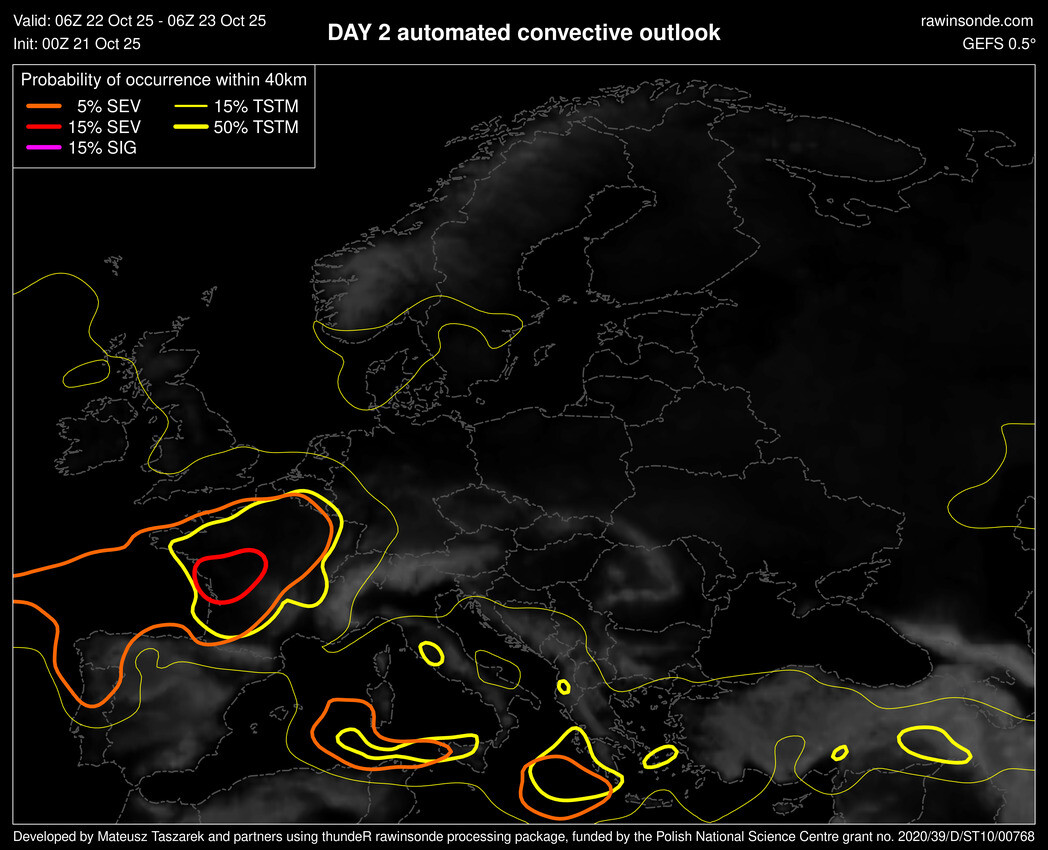Pour précision sur la zone d’ASTORP c’est > à 5% ce qui reste faible je le concède mais ça a le mérite de soulever le risque en effet . D’ailleurs pour avoir discuté avec Mateusz Taszarek le paramétrage de l’algorithme lui donnait du fil à retordre sur ces situations low CAPE high SHEAR et il trouvait le résultat du modèle trop « conservateur » . Pour Keraunos la probabilité était estimée entre 15 et 30%.