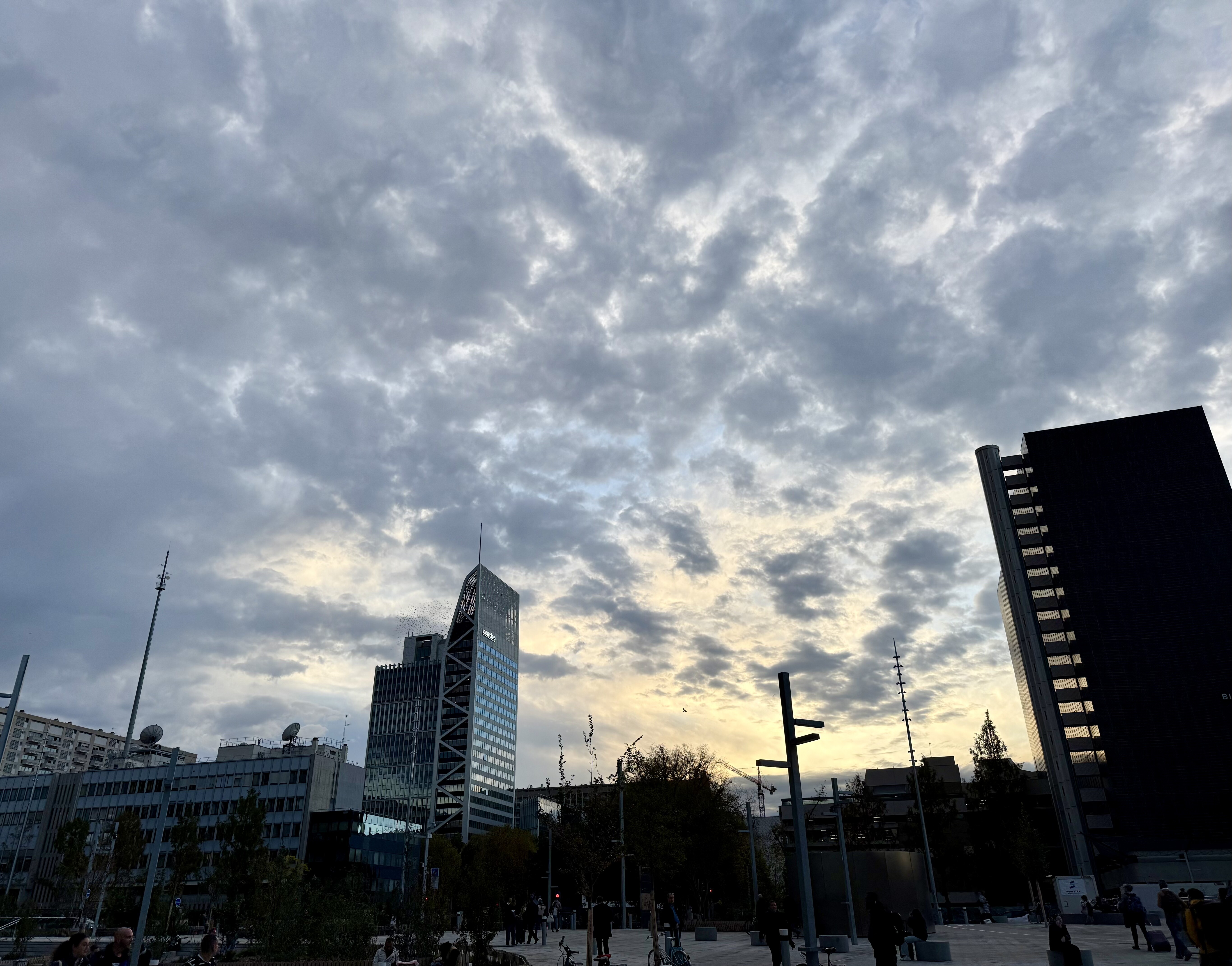 Bonjour, Une assez belle journée ensoleillée malgré un voile nuageux parfois présent. Une douceur toujours bien présente avec 15,4 degrés en Tn à la station de Villefontaine et de 17 à près de 19 degrés sur Lyon. Photo prise de la Part-Dieu ce soir -