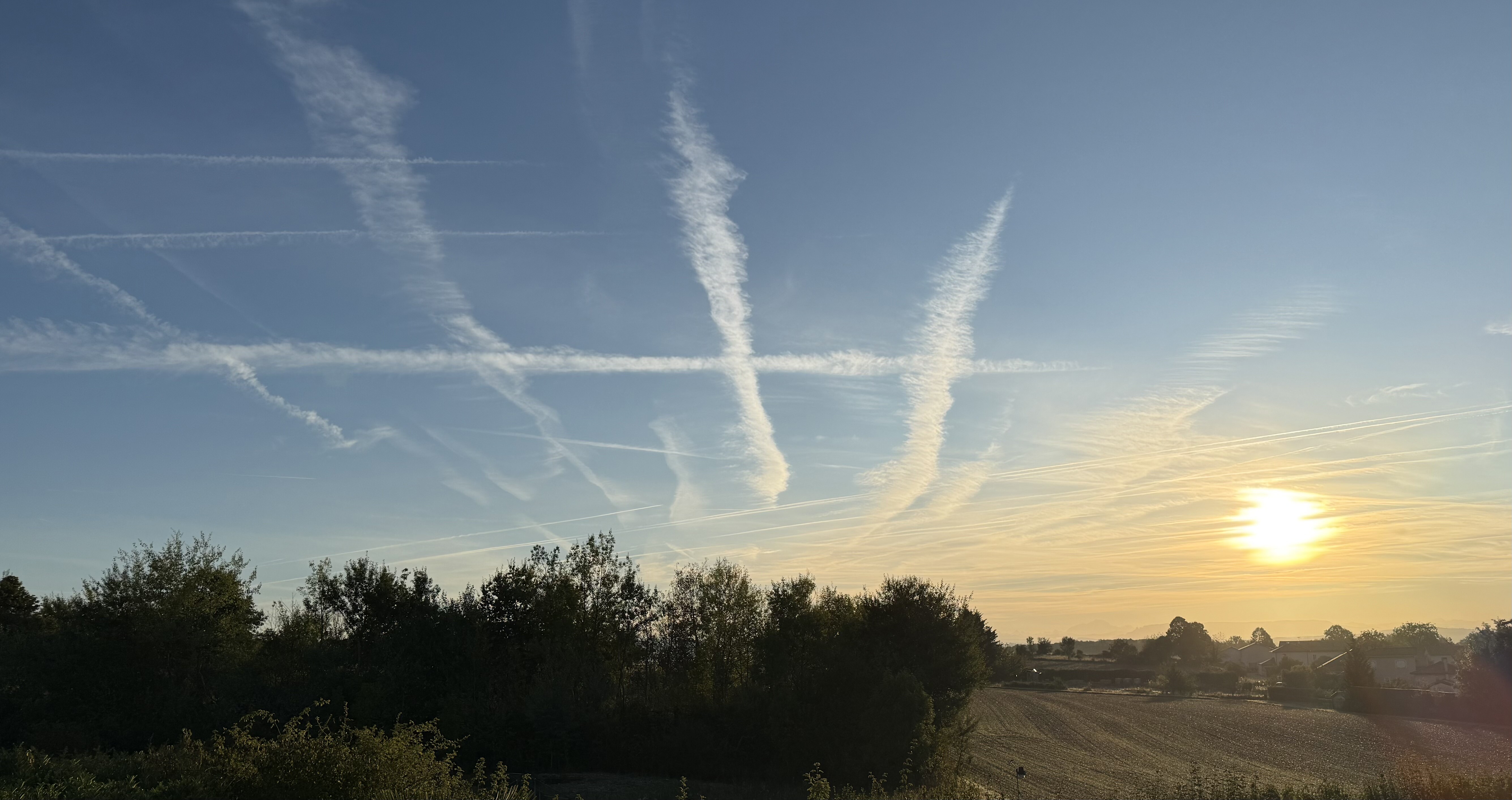 Bonjour, Un lever de soleil avec quelques nuages élevés et traînées d’avion à l’Est. Globalement, c’est une belle journée qui s’annonce avec des températures maximales en hausse par rapport à hier. Petite fraîcheur matinale Tn 8,3 degrés à la station de Villefontaine. Bon week-end 😉- 1052 réponses