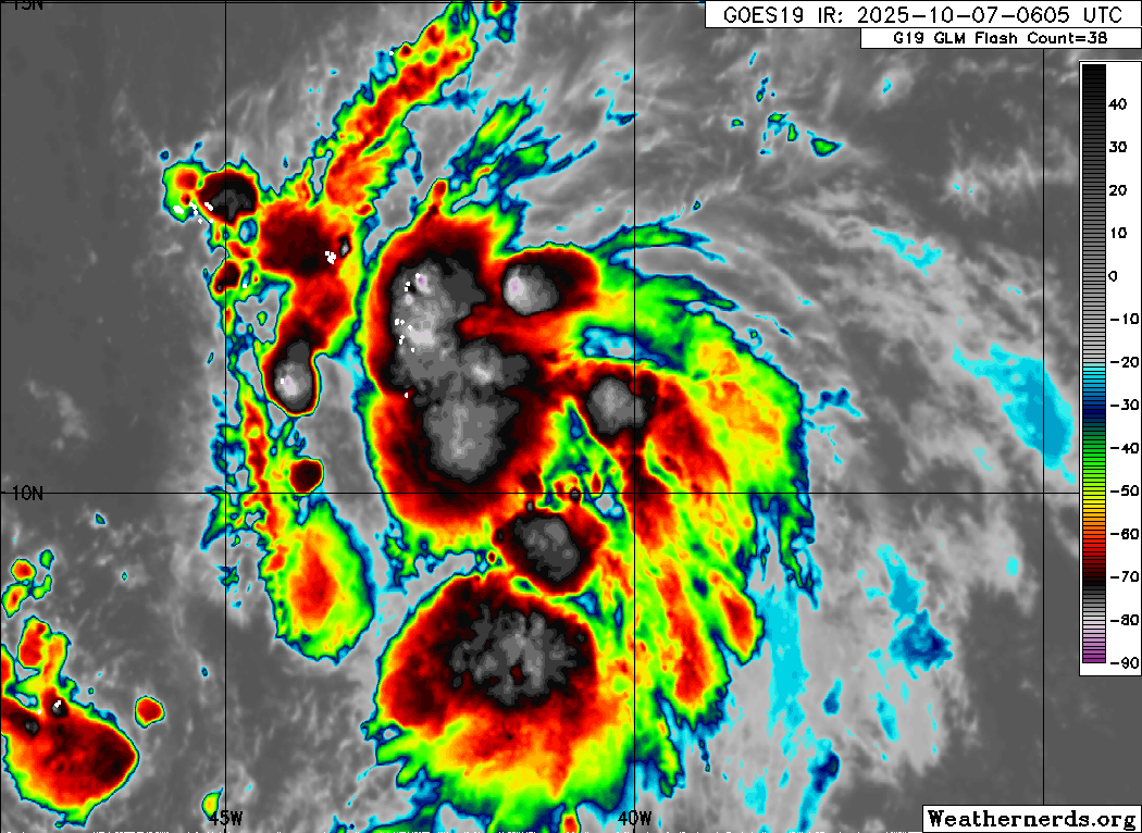 C'est tout chaud... Special Message from NHC Tue, 07 Oct 2025 14:08:13 +0000 NHC will initiate advisories on Tropical Storm Jerry (formerly AL95), located over the central tropical Atlantic, at 1100 AM AST (1500 UTC). Contrairement à ce que j'ai écrit plus haut, JERRY ne passera pas par la case dépression tropicale. -