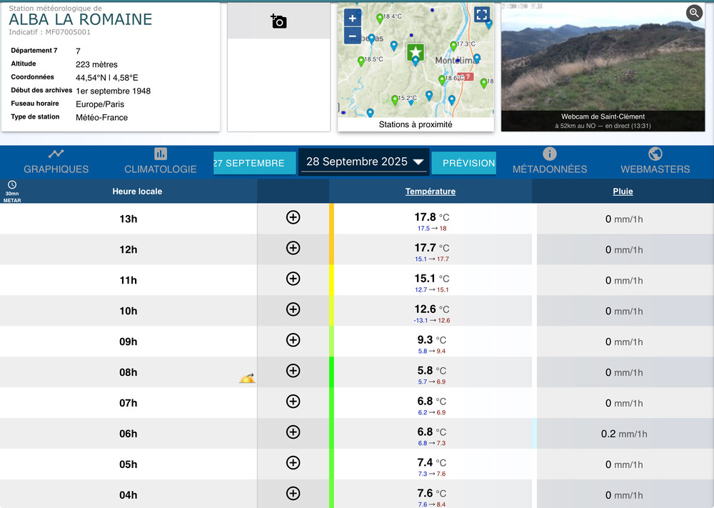 Je remarque que pour la journée d’aujourd’hui sur la station météo « ALBA LA ROMAINE» , il y a eu -13,1°C -> 12,6°C à 10h00-11h00. (voir capture d’écran). https://www.infoclimat.fr/observations-meteo/temps-reel/alba-la-romaine/MF07005001.html -