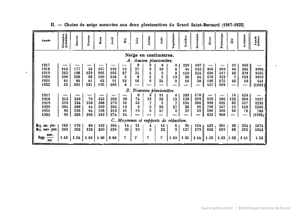 Oui fichier excel totaux mensuels depuis1879 en PJ qui combine diverses sources mais il ne faut pas avoir peur des pb d'homogénéité, qq contradictions plus que facheuses, c'est à prendre avec des pincettes, , sans parler du vent voir lien dans ce post , j'ai des écarts terribles sur qq années vers 2009 entre un fichier des moines qui démarre en 1976 et compte la neige au jour J comme SLF et un de météosuisse qui remonte plus loin mais a des bizzareries , (et attribue la neige fraiche mesurée le jour J, à J-1 comme les RR , ce qui pose des pb quand c'est le 1° du mois) MS a fini par renoncer aux mesures de précipitations homogénéisées depuis 2023, trop de résultats aberrants se sont accumulés et il y avait de sacrés changements de certains totaux mensuels entre les diverses versions d'homogénéisation, de quoi devenir chèvre Cela dit c'est encore pire au Saentis où on trouve parfois des cumuls totaux inférieurs ou égaux à la couche de neige en pleine saison, de la neige à expension au lieu de tassement (Saentis neige fraiche prise à 2500m dans une cuve ventée archi sous estimée incohérente avec les RR et T et neige au sol dans un coin particulièrement "généreux " à 2230m _GSB neige 1879 1923 -1976 2016.xlsx -