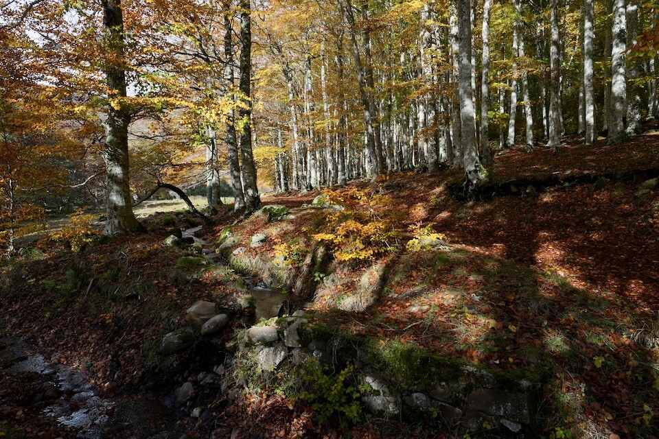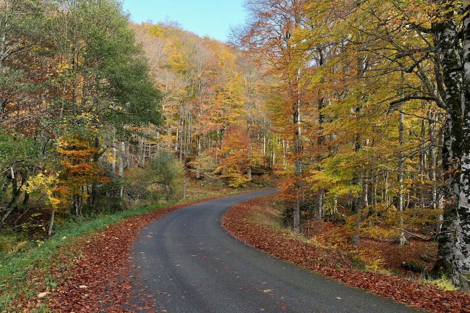Il est vrai que c'est ce qu'on dit maintenant pour le point culminant du Mont Lozère mais je peux te garantir qu'on utilisati facilement l'expression pic de Finiels il y a peu (pas les locaux sans doute encore que je me demande si ce n'est pas certains locaux qui auraient voulu faire plus "montagne", et en plus depuis on l'a un peu raboté, il était supposé être à 1702m d'altitude avant 🥲). Sur le net d'ailleurs, les références au pic de Finiels ne manque pas. Il faudrait que je retrouve de vieux bouquins de géographie qui utilisent le terme. C'est vrai que je n'ai pas cité les signaux tout à l'heure qu'on trouve aussi en Margeride. Le terme est joliment approprié, je trouve à pas mal de points à peine culminants mais qui peuvent servir de repère si on y plante quelque chose ou si on connaît bien le coin. Ça finit d'ailleurs par être compliqué si tu dis aux gens que le sommet de la Margeride c'est le Truc de Fortunio mais que le Signal de Randon à 2 kilomètres est presque aussi haut si tu commence à préciser qu'il ne faut pas confondre le Signal de Randon avec le Truc de Randon qui est juste un peu plus bas avec les restes du château de Randon (le château vieux puisque Châteauneuf c'est un peu plus loin). Sur l'Aubrac, ils essayent de te faciliter les choses parfois : genre trois burons de même nom mais il y a celui d'en haut, celui du milieu et ce lui d'en bas : Fontanilles, la Baysse, les Plèches, le Trap, ou bien seulement celui d'en haut et celui d'en bas : Puech Cremat, le Pesquier, etc. Sinon, temps un peu couvert mais avec quelques percées du soleil et une température douce (9°C-10°C vers 9h-10h) en partant ce matin vers le sud. On est passés par Bonnecombe histoire de profiter encore un peu plus longtemps que par l'autoroute de l'automne lozérien. Le haut de l'Aubrac n'est quand même pas vert contrairement aux zones un peu plus basses. Encore 3 photos en descendant de Bonnecombe puis à Saint-Germain-du-Teil. -
